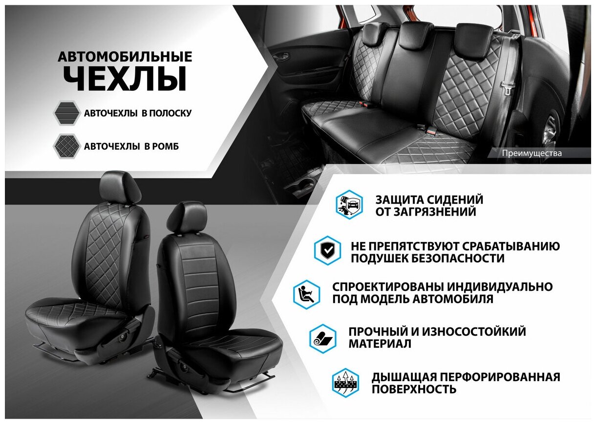 Car seat covers Rival Rhombus backrest 40/60 seats Kia Ceed II hatchback, station wagon 2012-2018, eco-leather, black, SC.2803.2
