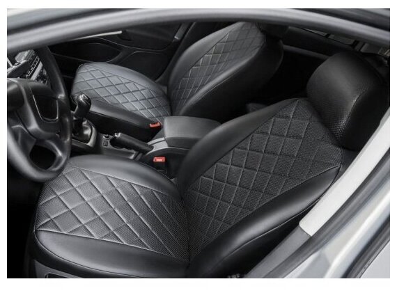Car seat covers Rival Rhombus backrest 40/60 seats Lada Vesta sedan, station wagon 2015-present/Vesta Cross station wagon 2017-present, without rear armrest, eco-leather, black, SC.6002.2