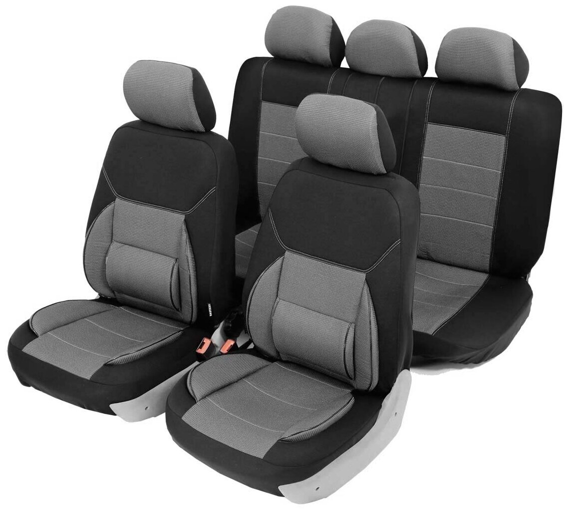 Type: cover, purpose: on the seat, material: jacquard, functions: protection against dirt, number of seats: 5, seat position: rear, front, fastening: hooks, velcro, zipper, rubber bands, size: M