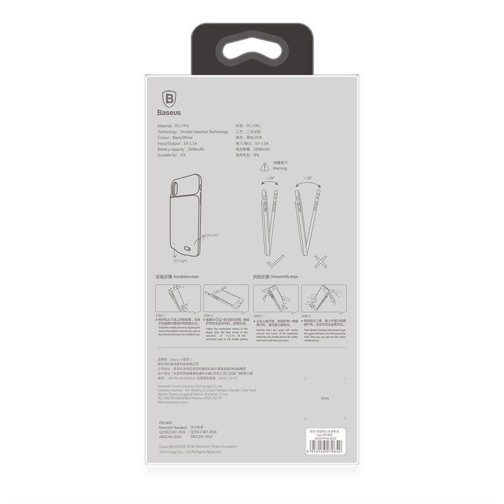 Phone manufacturer: Apple, compatible models: Apple iPhone X, battery capacity: 3500 mAh, material: polycarbonate, polyurethane