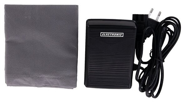 Dvd manual, 4 spool cap, blind stitch foot, scrap tray, soft case, needle set, screwdriver, pedal, tweezers, user manual, 4 spool net, accessory bag, brush