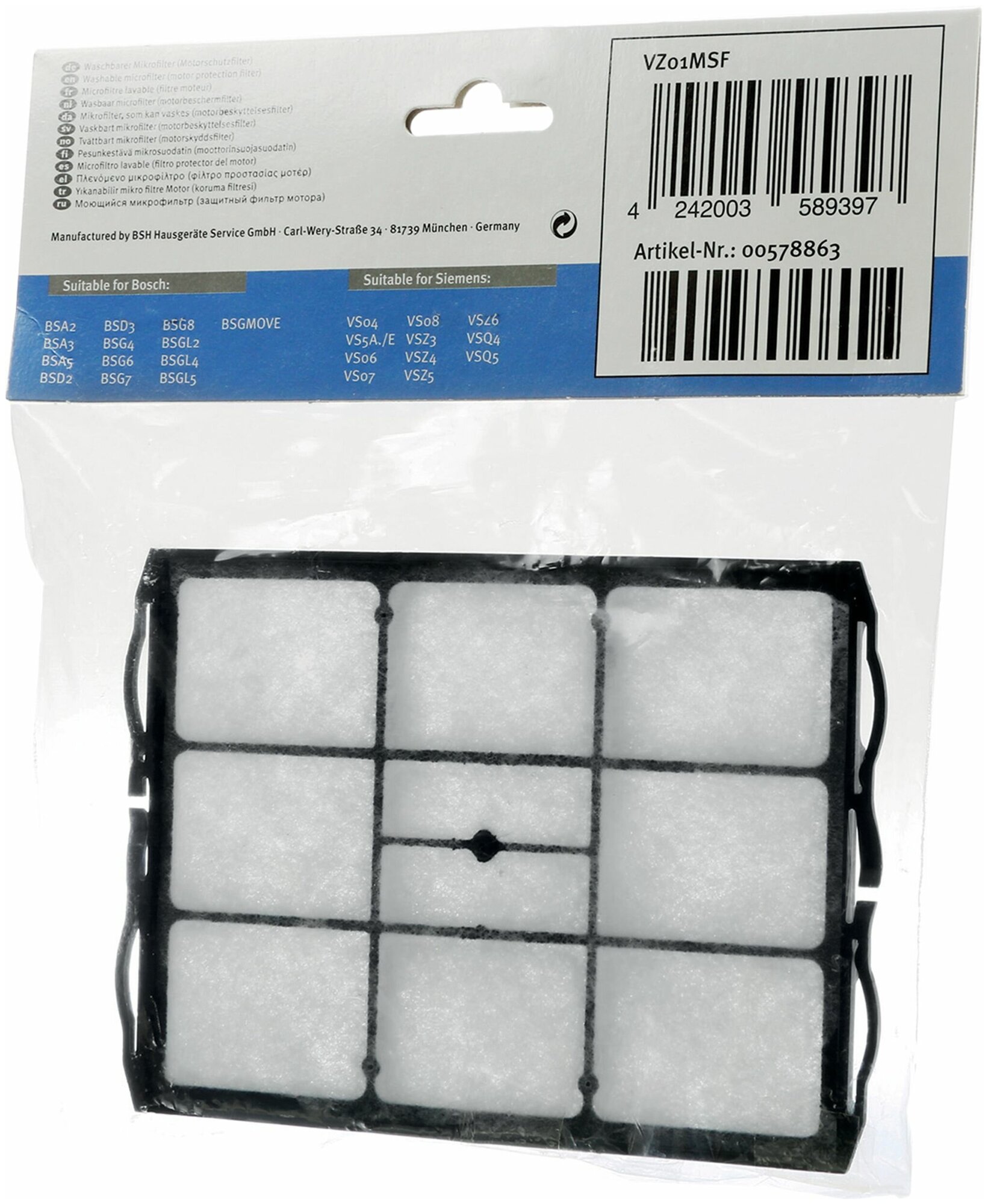 Vacuum cleaner manufacturer: Bosch, accessory type: filter