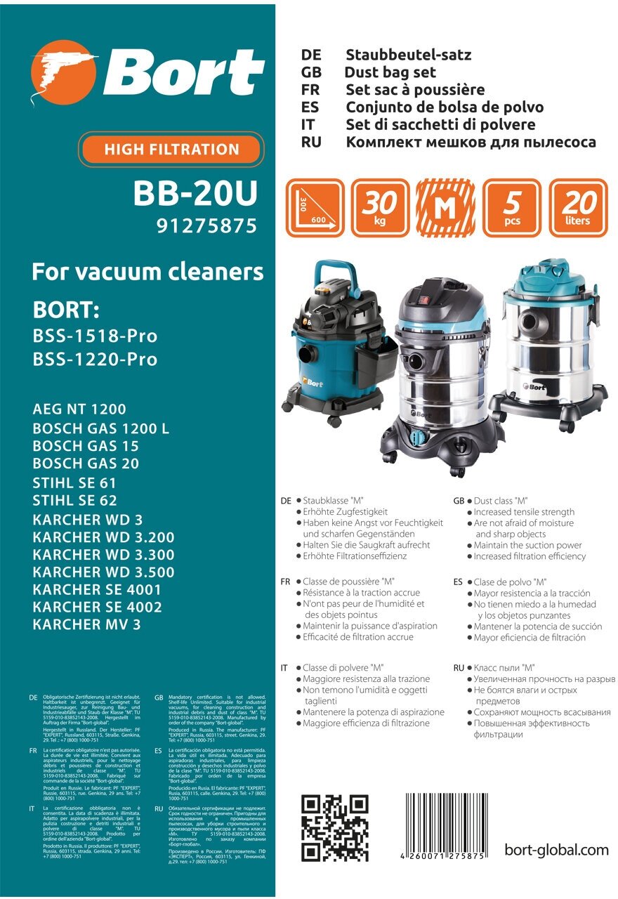 Vacuum cleaner manufacturer: Bort, accessory type: dust bag, material: paper, length: 60 cm, width: 30 cm