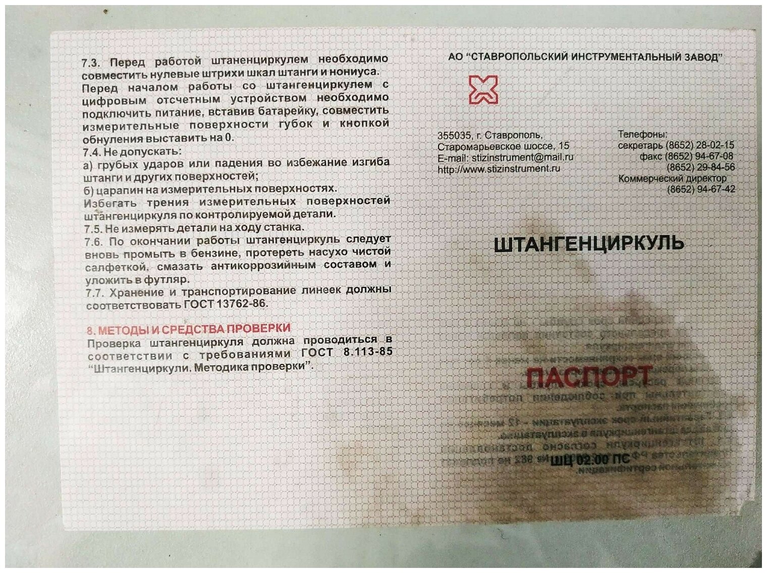 Instrument type: vernier caliper, type: vernier, length: 150 mm, maximum measurement value: 150 mm, graduation: 0.10 mm