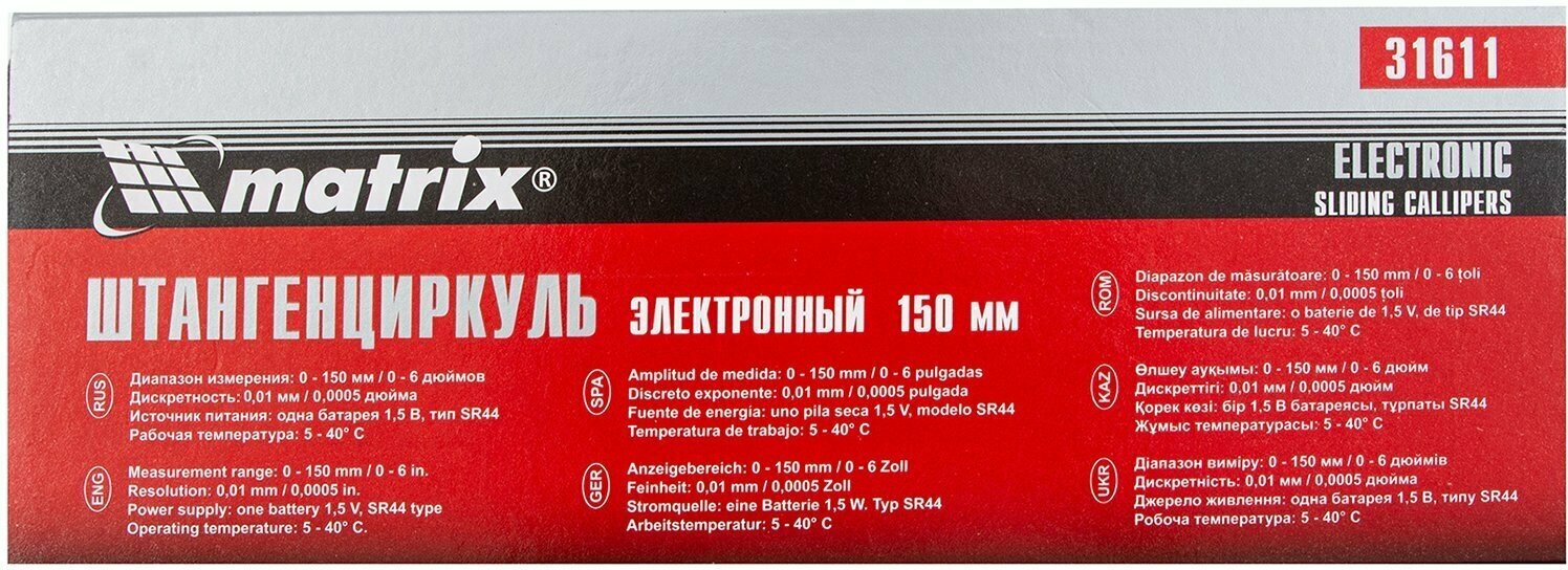 Instrument type: caliper, type: digital, maximum measurement value: 150 mm, scale division: 0.01 mm