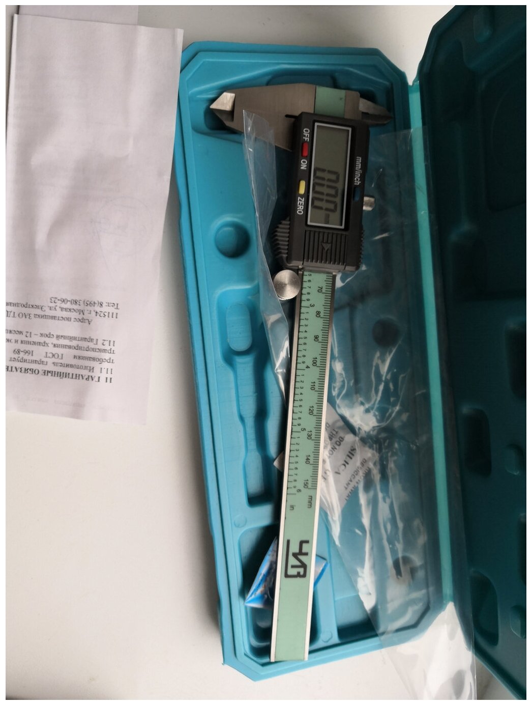 Instrument type: caliper, type: digital, maximum measurement value: 150 mm, scale division: 0.01 mm