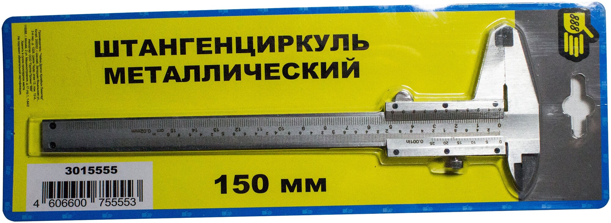 Instrument type: vernier caliper, type: vernier, length: 200 mm, maximum measurement value: 150 mm, graduation: 0.02 mm