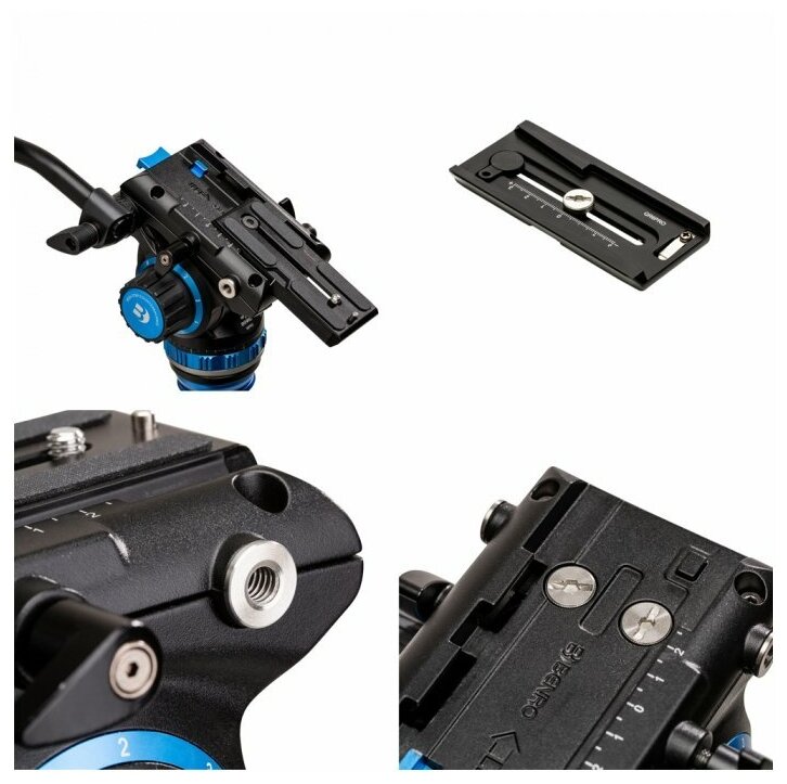 Head included, bag hook, interchangeable platform, removable head, level, case included