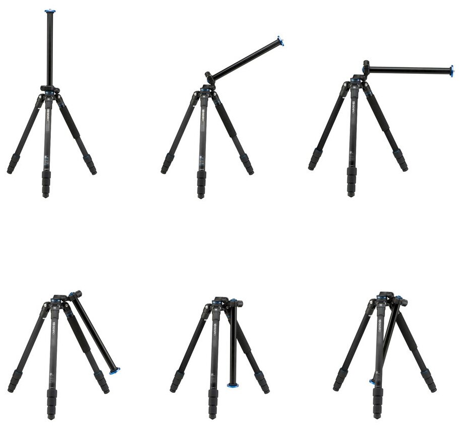 Interchangeable platform, level, Possibility of reversing the central rod, Possibility of shooting panoramas, Hook for hanging the load, Legs for fixing into the ground
