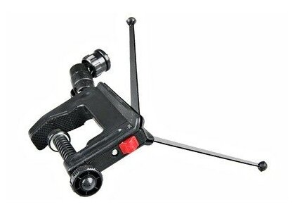 Grip size for a flat surface - from 7 to 50 mm, for a pipe - from 14 to 50 mm; folding legs for mounting the tripod on a horizontal surface