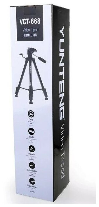 Tripod type: outdoor, design: tripod, scope: for photo and video cameras, maximum shooting height: 130 cm, head type: 3D, options and kit: head included, lifting mechanism, interchangeable platform, shooting in