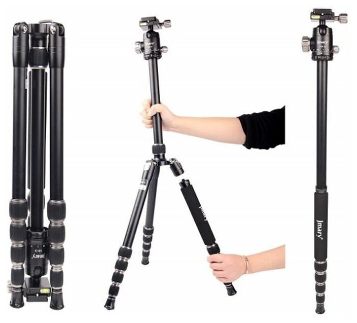Tripod type: outdoor, design: tripod, scope: for photo and video cameras, maximum shooting height: 157.50 cm, head type: ball, options and kit: interchangeable platform, level, non-slip support
