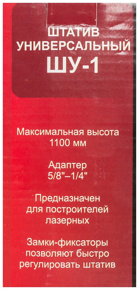 Type: extension screw, tripod for laser level/level, purpose: for laser level, universal, length: 1100 mm, tripod features: foldable design, device thread: 5/8, 1/4, thread of the mounting screw: 1/4, 5/