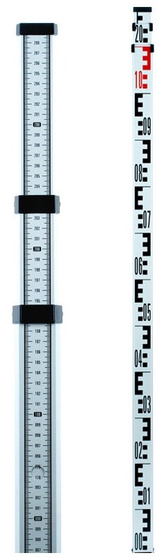 Type: rail, purpose: for leveling, length: 3000 mm, tripod features: telescopic, pole/rail features: telescopic, scale in millimeters, scale in centimeters, equipment: adjustment tool, case