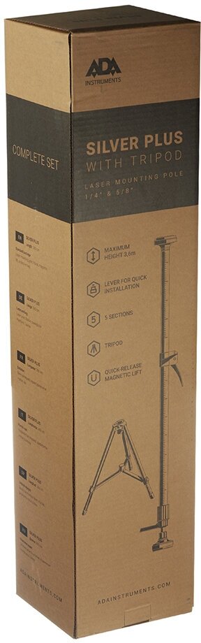 Type: tripod, purpose: for laser level, for power tools, length: 3600 mm, tripod features: foldable design, elevation head, device thread: 1/4, 5/8, equipment: stop, case