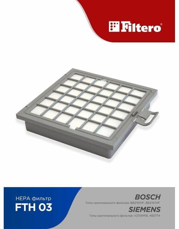 Vacuum cleaner manufacturer: Bosch, accessory type: filter, material: microfiber, plastic