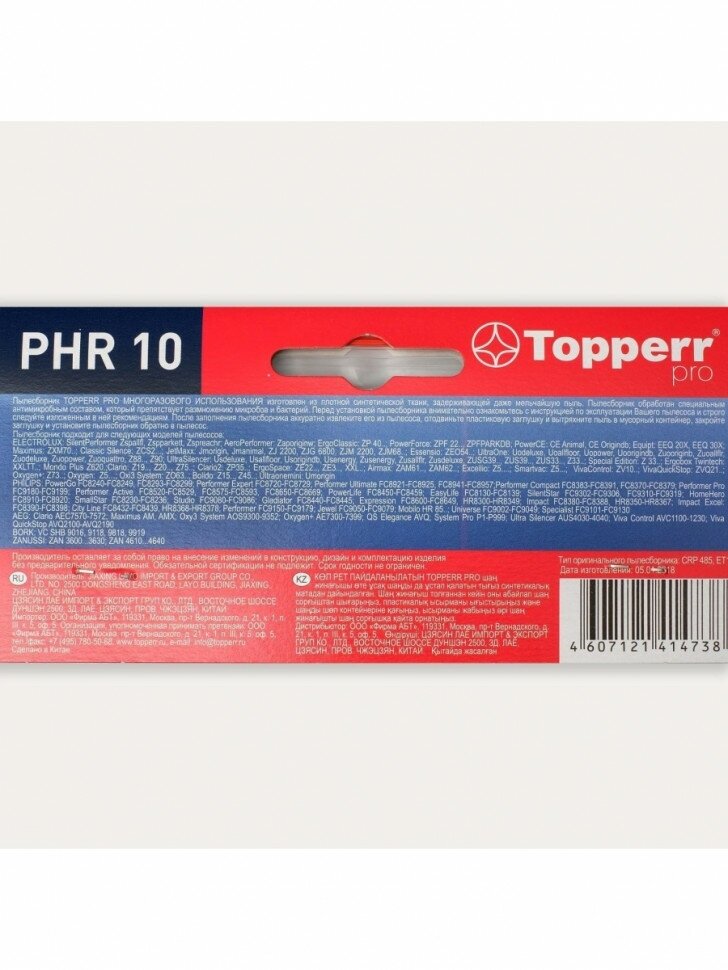 Vacuum cleaner manufacturer: AEG, BORK, Electrolux, Philips, Zanussi, accessory type: dust collector, filter, Household vacuum cleaner, material: microfiber