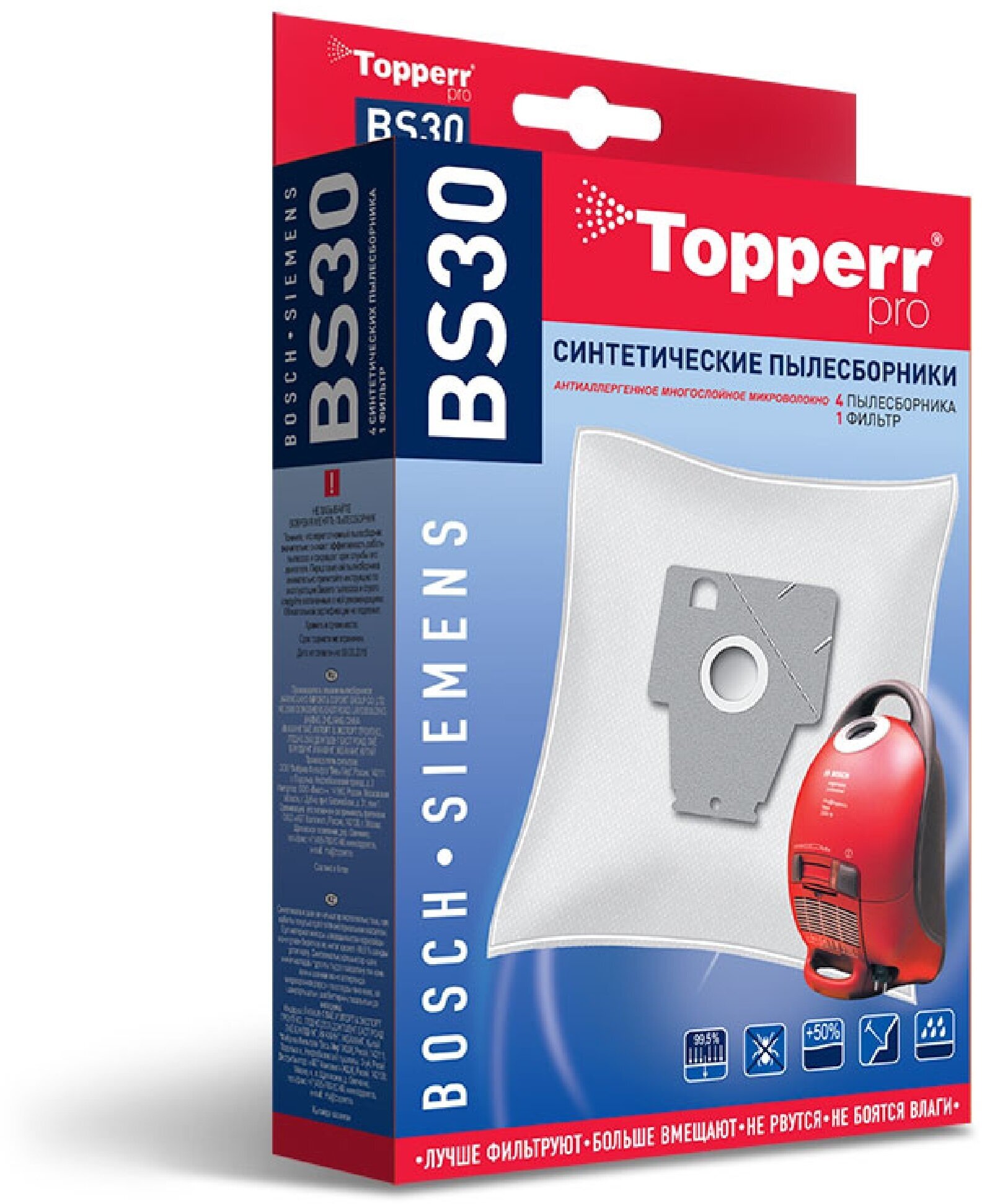 Vacuum cleaner manufacturer: Bosch, Siemens, accessory type: dust bag, filter, material: microfiber