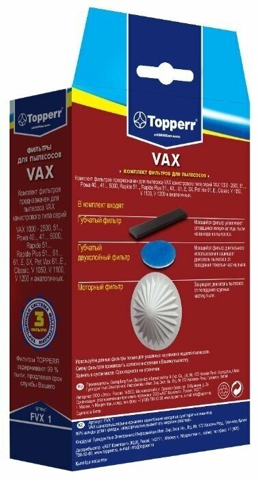 Vacuum cleaner manufacturer: Vax, accessory type: filter, material: microfiber, foam rubber