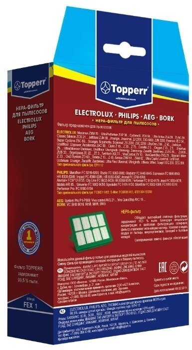 Vacuum cleaner manufacturer: AEG, BORK, Electrolux, Philips, accessory type: filter, material: microfiber, plastic
