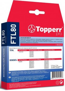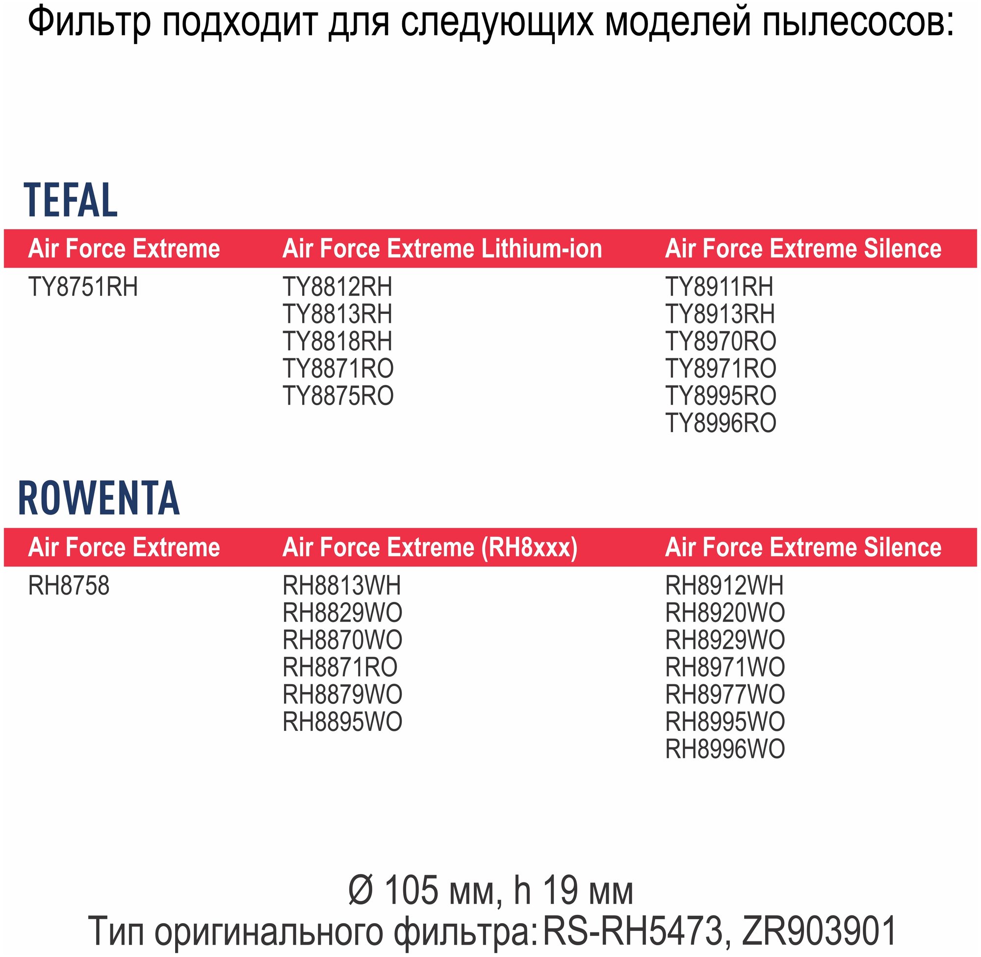 Vacuum cleaner manufacturer: Rowenta, Tefal, accessory type: filter, material: foam rubber, length: 10.50 cm, width: 10.50 cm, height: 1.90 cm