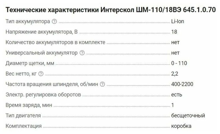 INTERSKOL SHM-110/18VE Li-ion API cardboard, without battery and memory