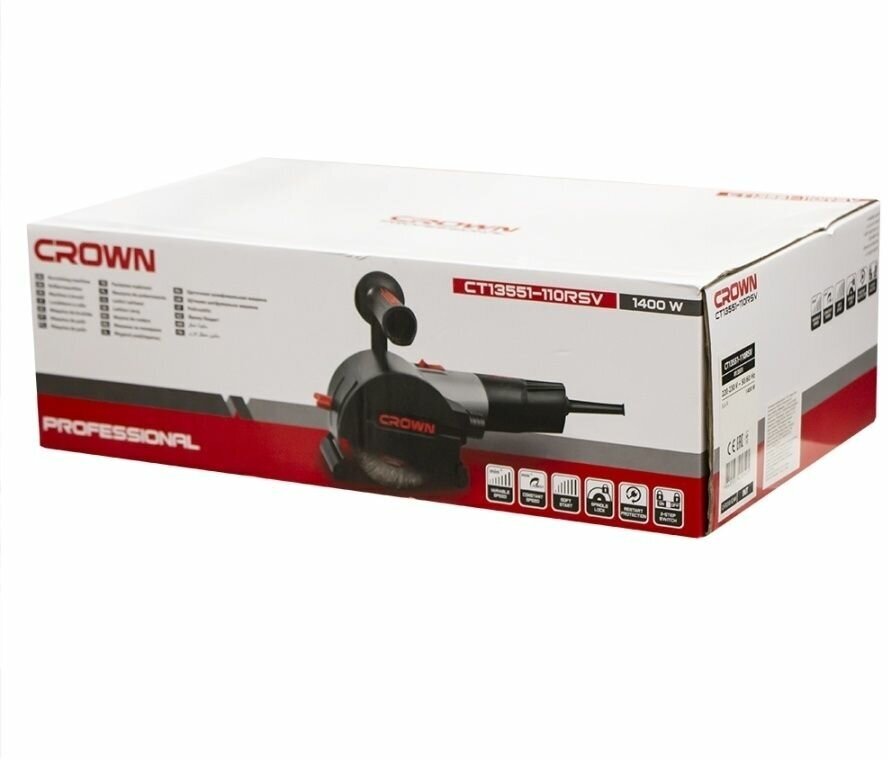 Type of power supply: from the mains, power consumption: 1400 W, brush diameter: 110 mm, max. speed: 4000 rpm, functions: soft start, speed control, speed stabilization system, Smooth speed change, OS