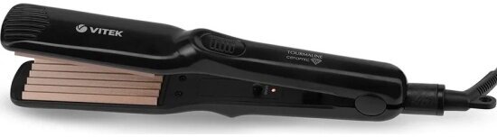 Type: tongs, coating: tourmaline ceramic, type of tongs: corrugated, purpose: corrugated, additional functions: overheating protection, maximum heating temperature: 200 °C, power: 40 W, features: ready indication