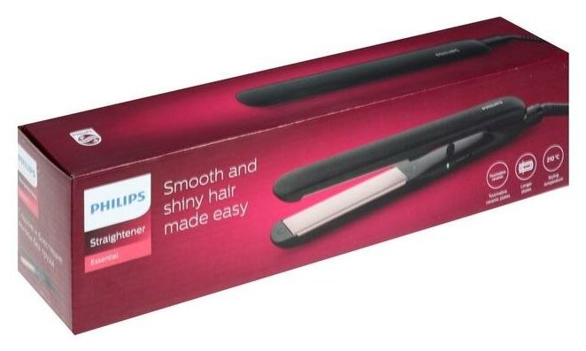 Type: straightener, coating: tourmaline, purpose: straightening, styling, additional functions: ionization, plate width: 28 mm, maximum heating temperature: 210 ° C, power: 40 W, features: cord rotation, ind