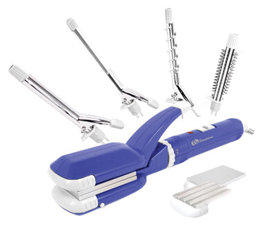 Type: tongs, purpose: straightening, corrugation, curling, spiral styling, styling, power: 30 W, features: on indication, nozzles included: corrugation, for straightening, for spiral styling, brush, curling tongs