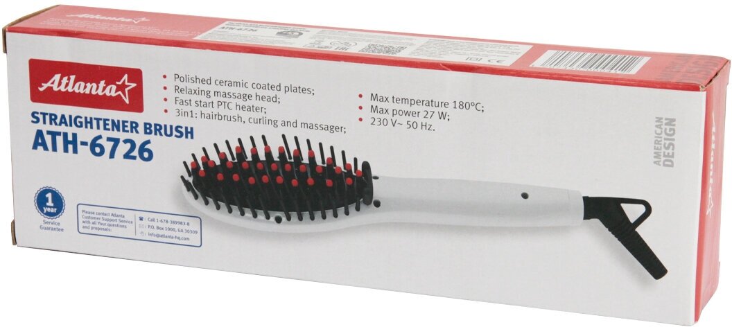 Type: straightener comb, coating: ceramic, type of tongs: curling iron, purpose: straightening, styling, maximum heating temperature: 180 ° C, power: 27 W, features: cord swivel, hanging loop
