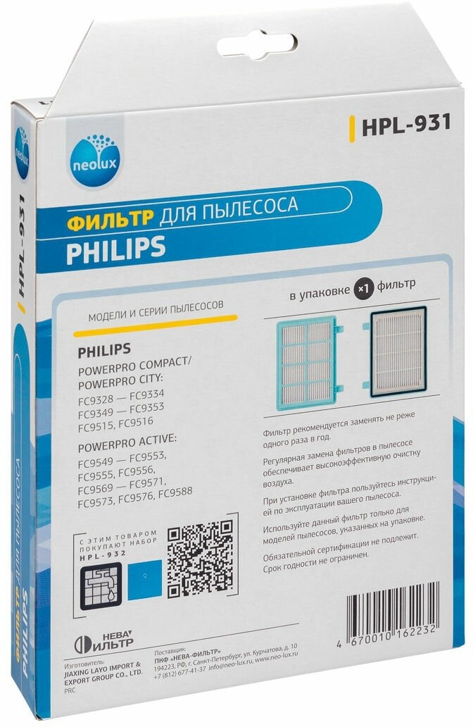 Vacuum cleaner manufacturer: Philips, accessory type: filter, material: microfiber, plastic