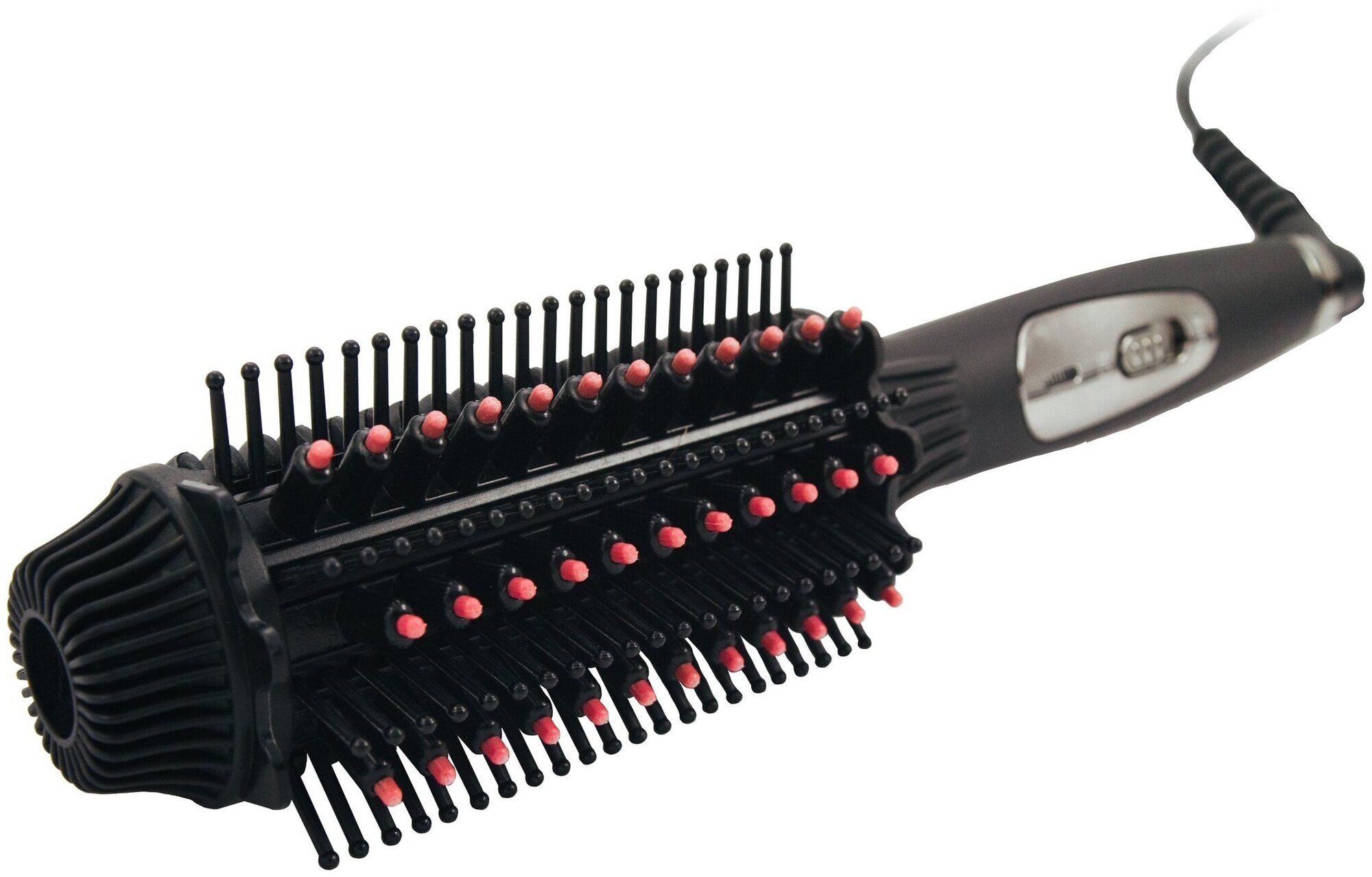 Cord swivel, straightener teeth, power on indicator, hanging loop