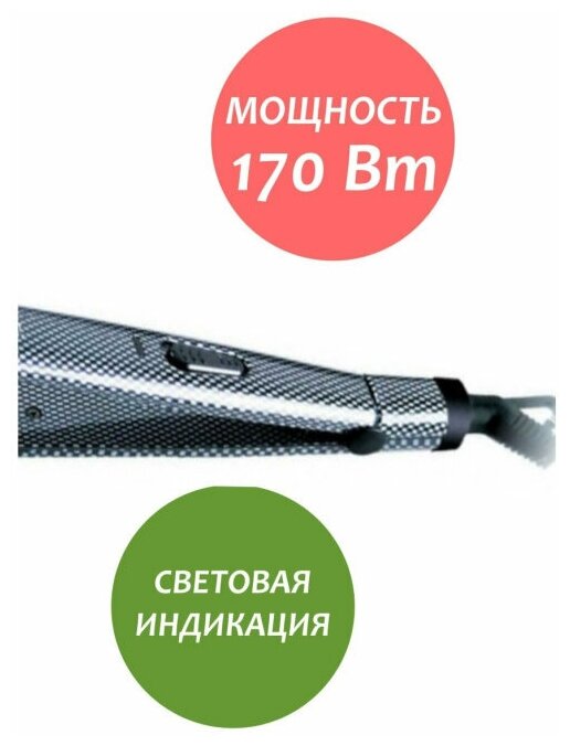 Type: straightener, coating: tourmaline ceramic, purpose: straightening, maximum heating temperature: 210 °C, power: 170 W, features: cord swivel, power on indication, hanging loop