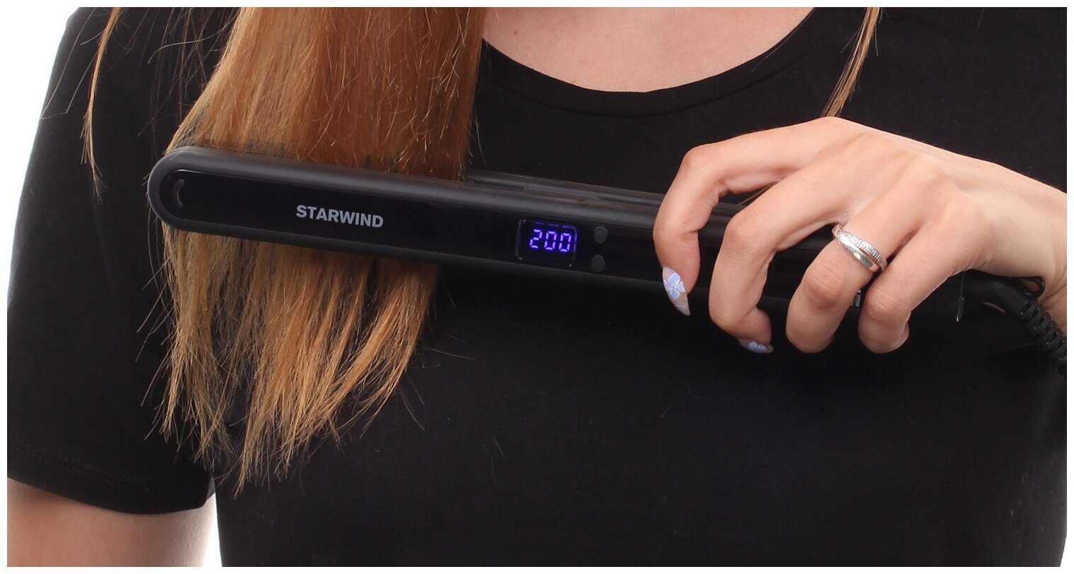 Type: straightener, coating: ceramic, purpose: straightening, maximum heating temperature: 215 °C, power: 65 W, features: cord swivel, display, power on indication, ready to use indication, loop for