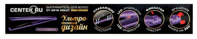 Type: straightener, coating: ceramic, purpose: straightening, maximum heating temperature: 230 °C, power: 50 W, features: cord swivel, power on indication, hanging loop