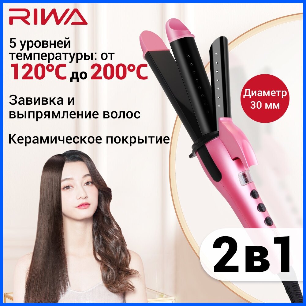 Tongs - corrugated hair, RIWA RB-809I 2 in 1 curling iron and hair straightener