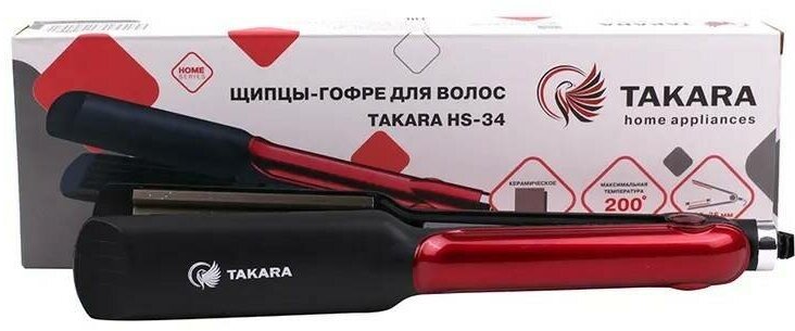 Corrugated tongs for hair Takara HS-34 color: cherry with ceramic plates 100 * 49 mm