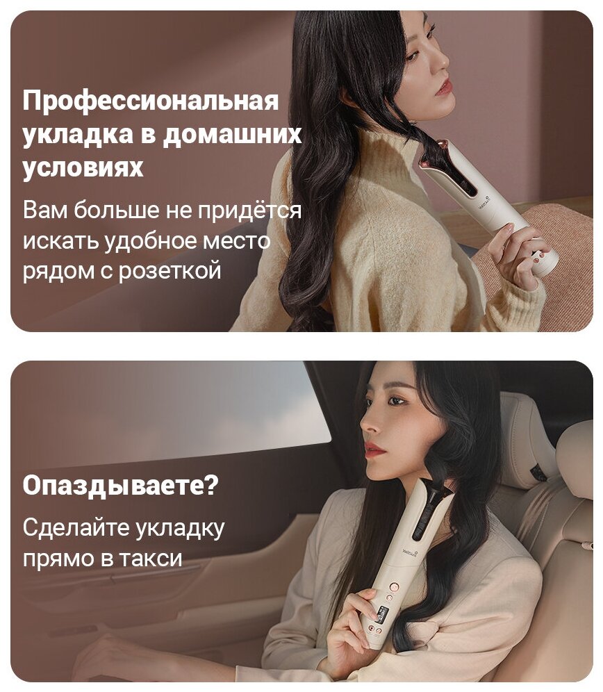 Type: styler, coating: ceramic, type of tongs: curling iron, purpose: corrugation, curling, styling, additional functions: automatic nozzle rotation, automatic shutdown, fast heating, overheating protection, dia