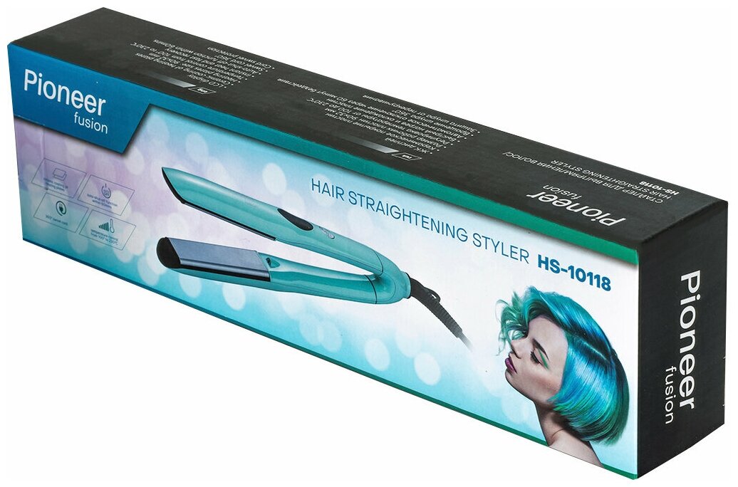 Pioneer HS-10118 hair straightener with ceramic plates, digital temperature control from 100C to 230C, fast heating and auto-off