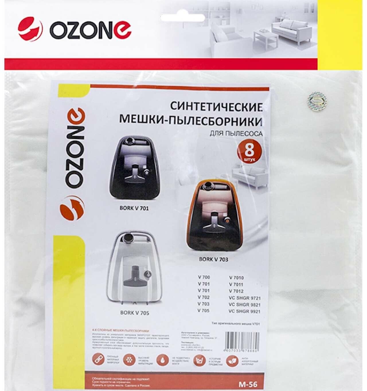 Multilayer synthetic dust bags Ozone M-56S for vacuum cleaner BORK V7D1, 4 pcs.