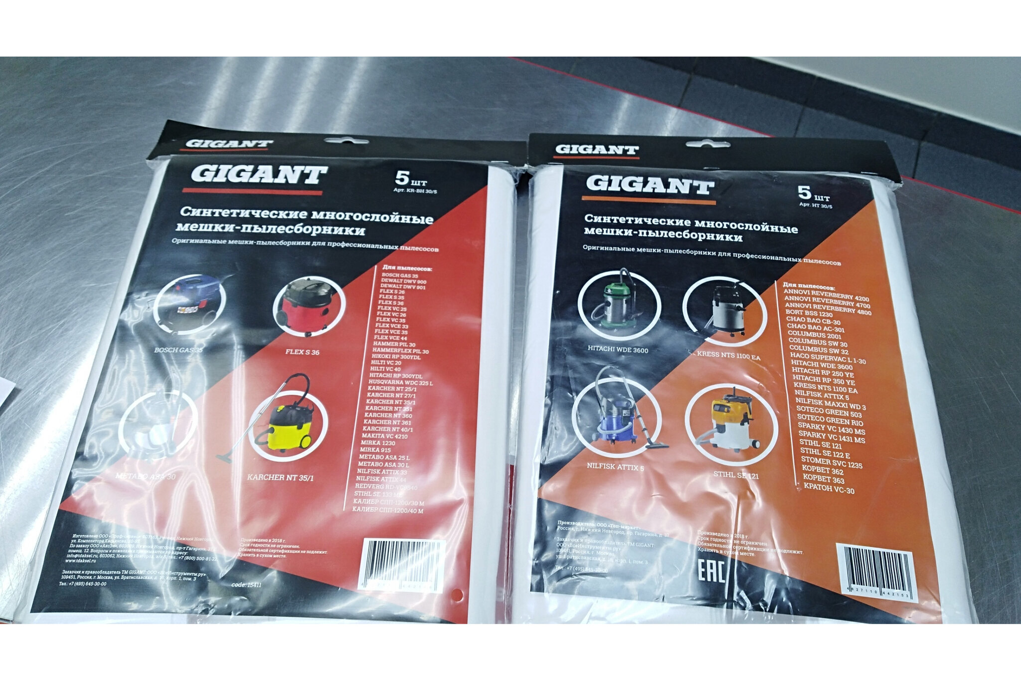 Bags of professional vacuum cleaners 5 pcs. 36 l Gigant KR-BH 30/5 Russia
