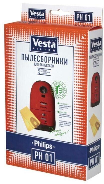 Vacuum cleaner manufacturer: Philips, Vesta, accessory type: dust bag, filter, material: paper