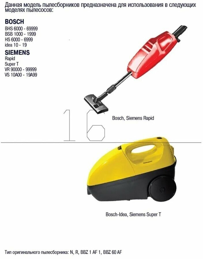 Vacuum cleaner manufacturer: Bosch, Vesta, accessory type: dust bag, filter, material: paper