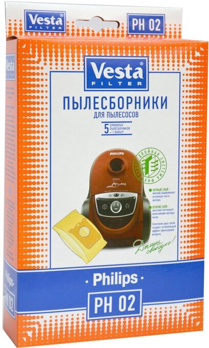 Vacuum cleaner manufacturer: Philips, Vesta, accessory type: dust bag, filter, material: paper