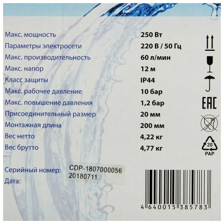 Rotor type: wet; maximum ambient temperature: 50 °C