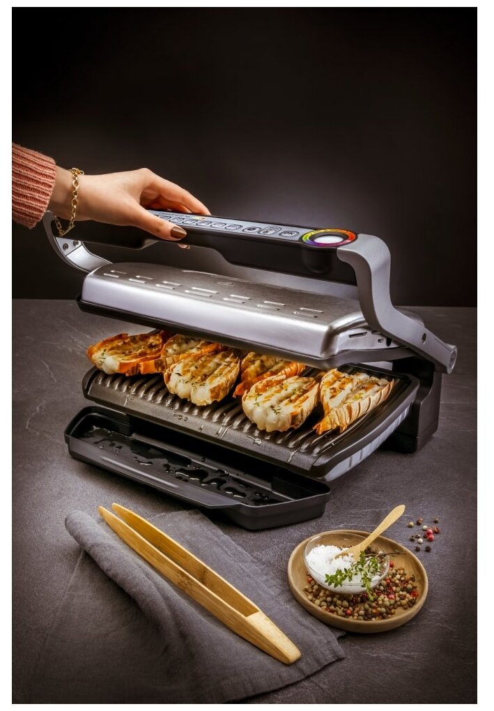 Type: grill, power: 2000 W, control: electronic, features: non-stick coating, contact grill, fat collection tray, additional functions: automatic switch-off, temperature control, material p