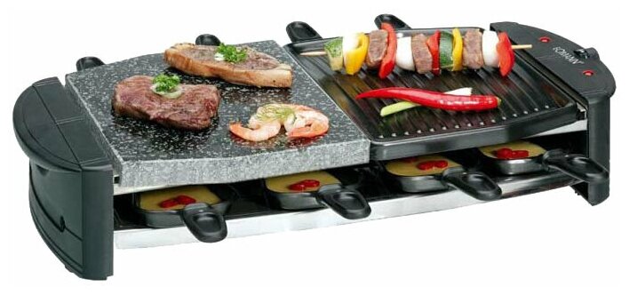 Type: raclette grill, power: 1300 W, control: mechanical, additional functions: temperature control, work surface material: metal/stone