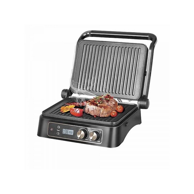 Type: grill, power: 2000 W, control: mechanical, features: non-stick coating, contact grill, fat collection tray, height adjustment of the top panel, removable plates, additional functions: possible