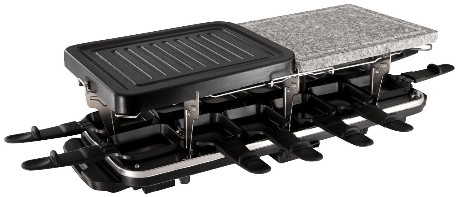Type: raclette grill, power: 1600 W, control: mechanical, additional functions: temperature control, work surface material: metal/stone